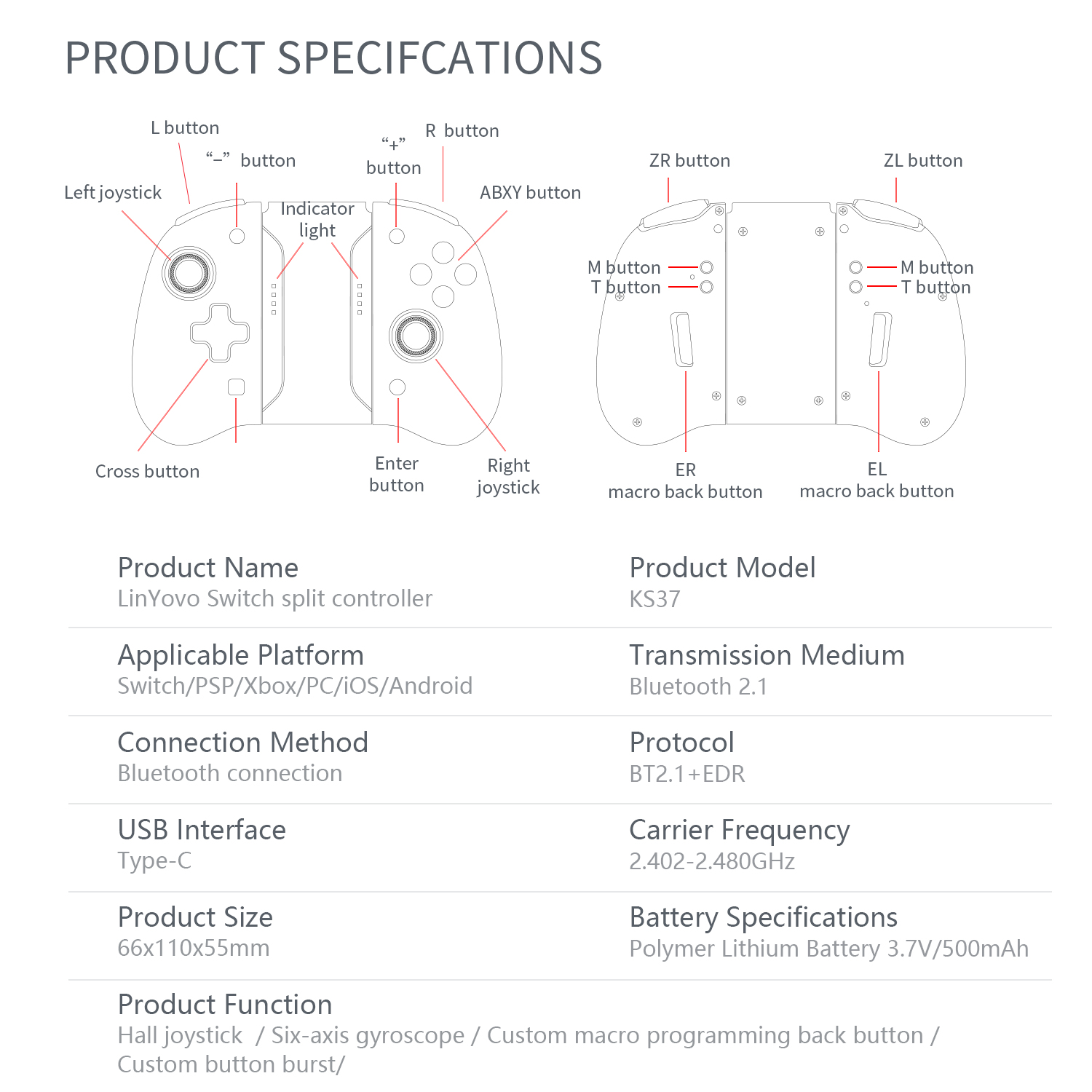 LinYuvo Switch Bluetooth Controller KS37