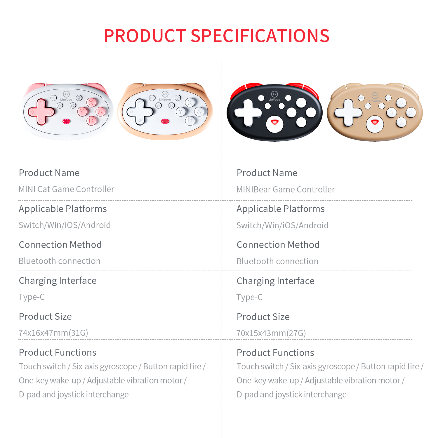 ● 6-axis gyroscope supports motion sensing on Switch